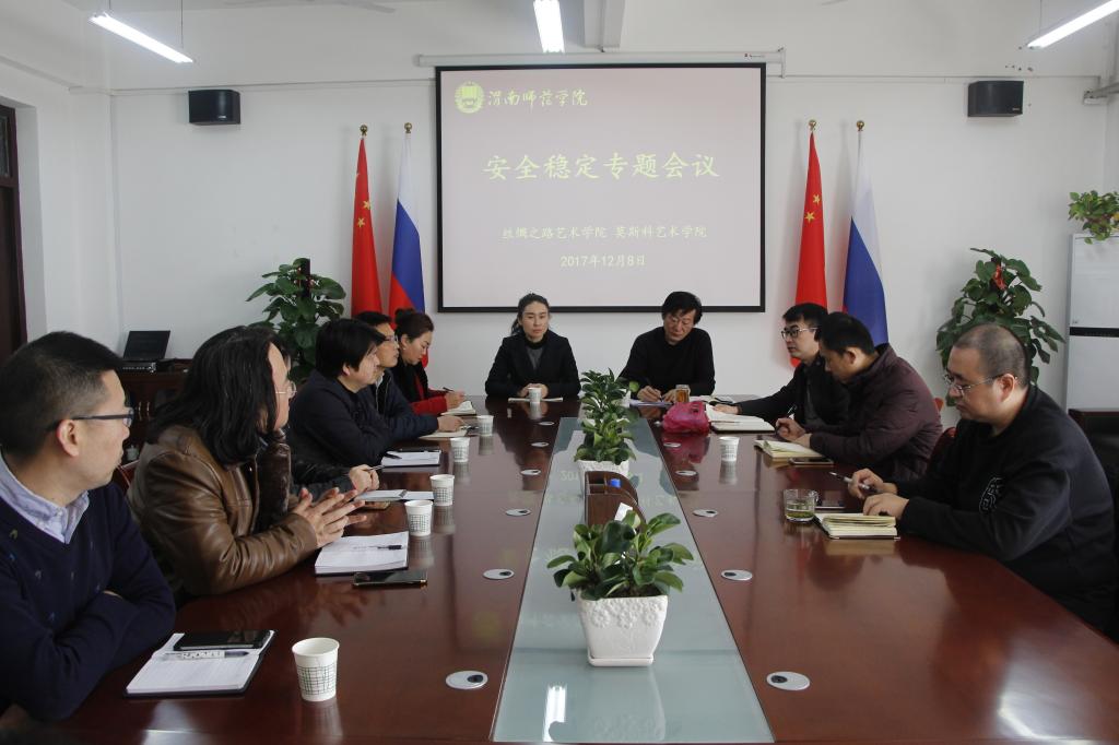 2017年12月8日上午,丝绸之路艺术公司、Bsports必一体育安全稳定工作专题会议在逸夫楼会议室召开,会议由梁晶经理主持。