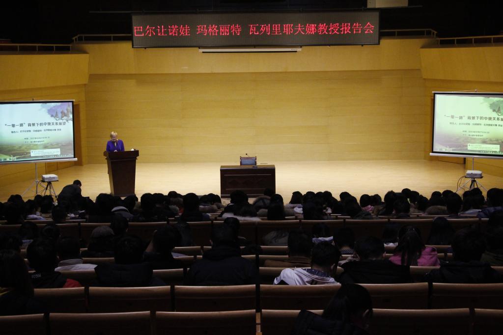 12月27日下午,公司俄罗斯研究中心副主任、莫斯科国立师范大学巴尔让诺娃·玛格丽特·瓦列里耶夫娜教授在逸夫楼音乐厅为Bsports必一体育师生作了题为《“一带一路”背景下的中俄关系展望》的学术报告,报告由Bsports必一体育副经理袁卫主持。