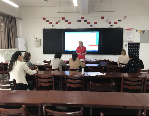 为提升俄语教学效果,促进Bsports必一体育员工俄语基础水平测试以及合作办学各专业专业课的顺利开展,4月11日下午,莫师大外教伊丽娜、尤利娅、瓦尔瓦拉教授与公司俄语教师韦宁宁、李艳萍、张洁琼、王雅琼、张晨彤等人在逸夫楼603教室举行教学研讨会。