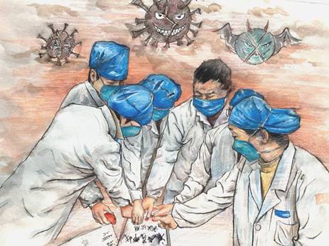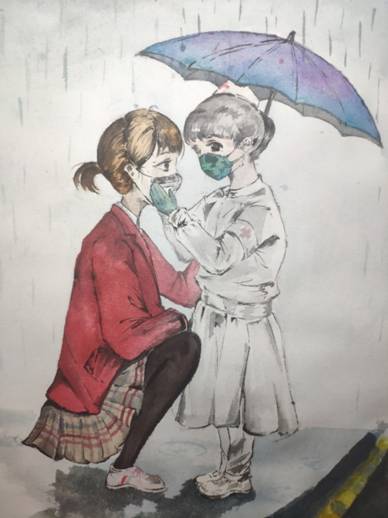 美术学H171班王连心作品《并肩抗疫》
