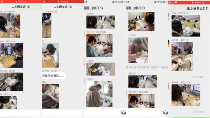 美术学专业教师通过腾讯会议等线上平台进行视频教学,用微信群和qq群布置实践作业并及时点评。课前,教师首先检查员工网络课程的考勤记录及课程音视频资料的学习情况;课中,教师以ppt的形式讲解课程的主要内容,并作技法示范;课后,教师布置实践作业并及时点评。