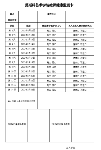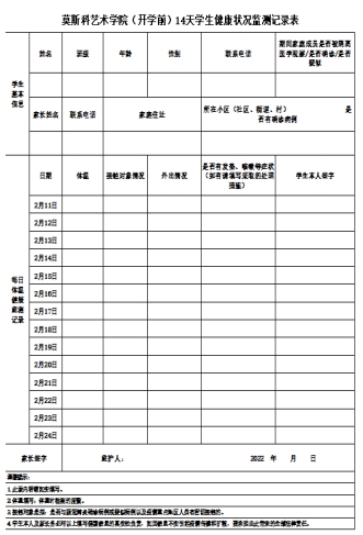 公司师生每日通过“Bsports健康日报系统”完成早、中两次健康打卡,公司办公室、员工工作队伍,履职尽责,定时督促师生完成健康打卡;根据公司要求开学前14天健康监测的要求,公司自制《Bsports必一体育教师健康监测卡》以及《Bsports必一体育(开学前)14天员工健康状况检监测记录表》,要求师生完成每日健康监测,并在开学前提交个人“陕西健康码”及“行程码”,及时向公司报告个人身体健康状况。