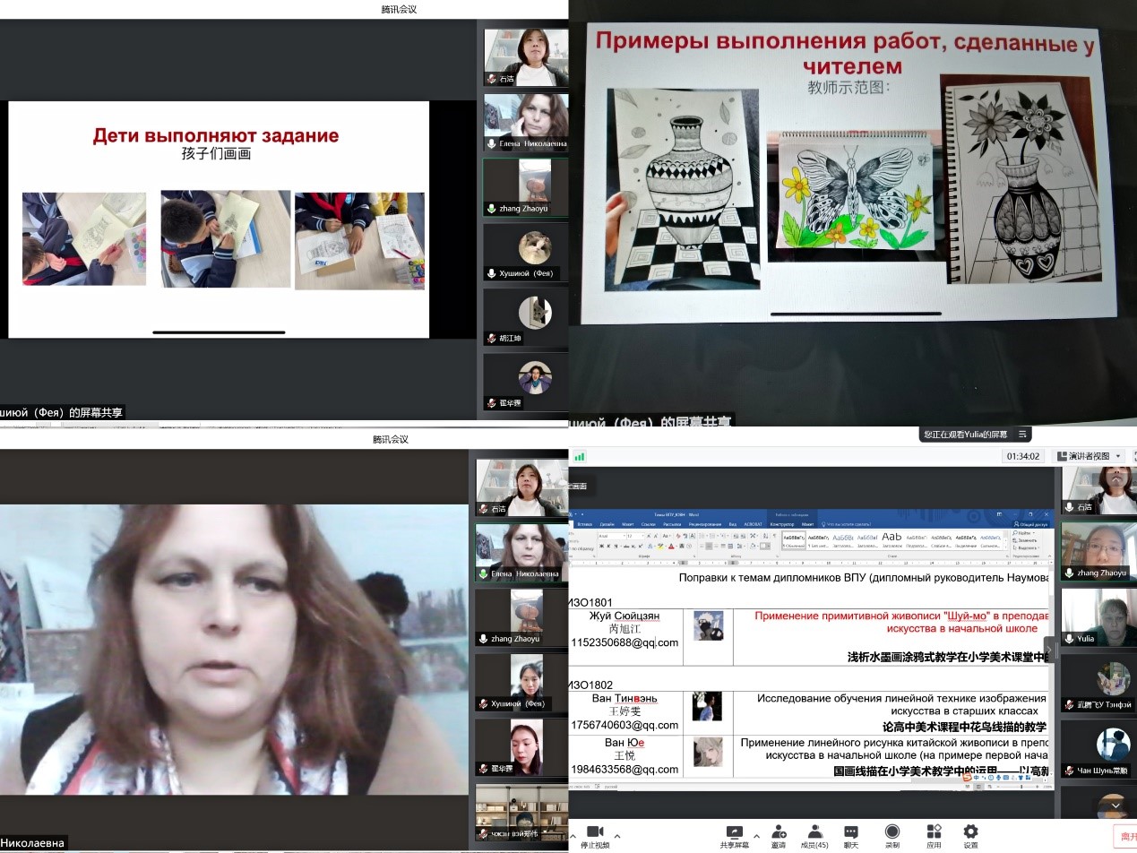 会议伊始,康斯坦丁对俄方毕业论文和毕业创作要求再次规范、严格要求。指导老师分组向员工介绍毕业论文和毕业创作工作的具体时间安排,对毕业创作的主题提出建议。接着,毕业生分组在线上逐一展示自己论文主要内容PPT,俄方导师详细讲解PPT上存在的问题,对论文格式的要求做规范性的要求和指导,提醒同学们认真做好相关准备。