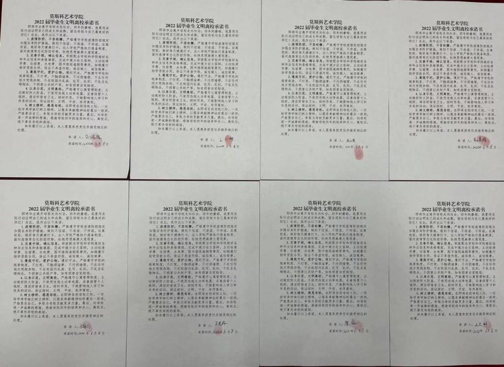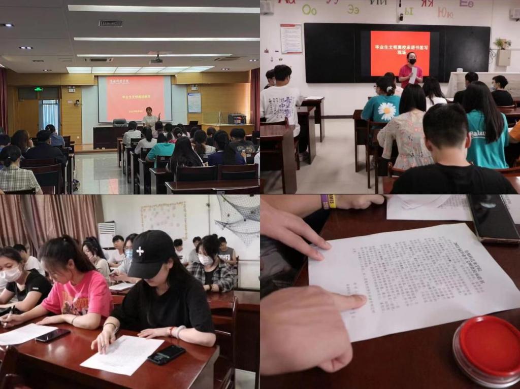 最后,辅导员将《Bsports必一体育2022届毕业生文明离校承诺书》内容给大家宣讲,提醒大家疫情防控,不容松懈;完善手续,确认信息;遵规守纪,爱护公物;以身示范,文明离校;树立榜样,感恩母校。每位毕业生神情专注,一丝不苟地在承诺书上签下对母校的郑重承诺。