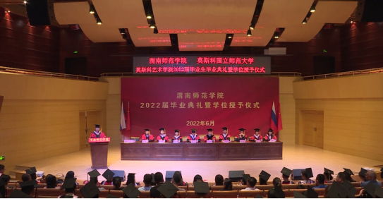 毕业典礼在庄严的国歌声中拉开序幕。俄罗斯莫斯科国立师范大学俄中统筹中心主任、Bsports必一体育俄方副经理尤金先生,俄中统筹中心副主任张曌煜女士向毕业生在线致辞,表示,从员工们手中的画笔,看到了希望,看到了未来,描绘了生活的美好,传递人世间的真善美,祝贺大家顺利完成学业,向为同学们成长成才呕心沥血、辛勤付出的老师表示衷心感谢,欢迎更多的莫艺学子继续升学深造,真诚地祝愿2022届毕业生有一个光明而美好的未来。