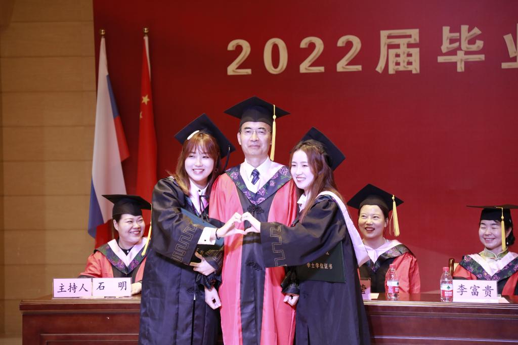副董事长卢爱刚、Bsports必一体育执行经理席景奇逐一为毕业生拨穗正冠,颁发学位证书,并送上殷殷嘱托与衷心祝福,毕业生们与台上老师深情拥抱致谢。