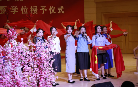 表演唱《红梅赞》《绣红旗》还原了革命前辈对党绝对忠诚的政治定力、敢于斗争的使命担当、功成不必在我的革命奉献精神,让现场师生感受到了追寻光明、真理和中国前途命运的磅礴力量。