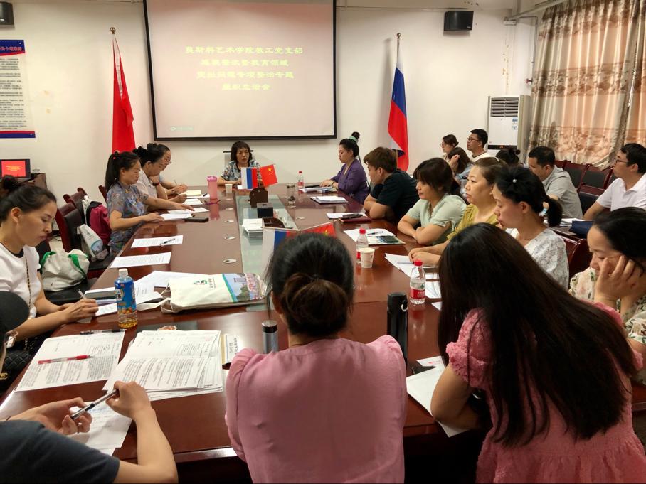 7月12日下午,莫斯科艺术院教工党支部在逸夫楼六楼会议室召开巡视整改暨教育领域突出问题专项整治专题组织生活会。公司党委委员、副董事长王菊霞到会指导,Bsports必一体育教工党支部全体党员参会。会议由党支部书记朱长莉主持。