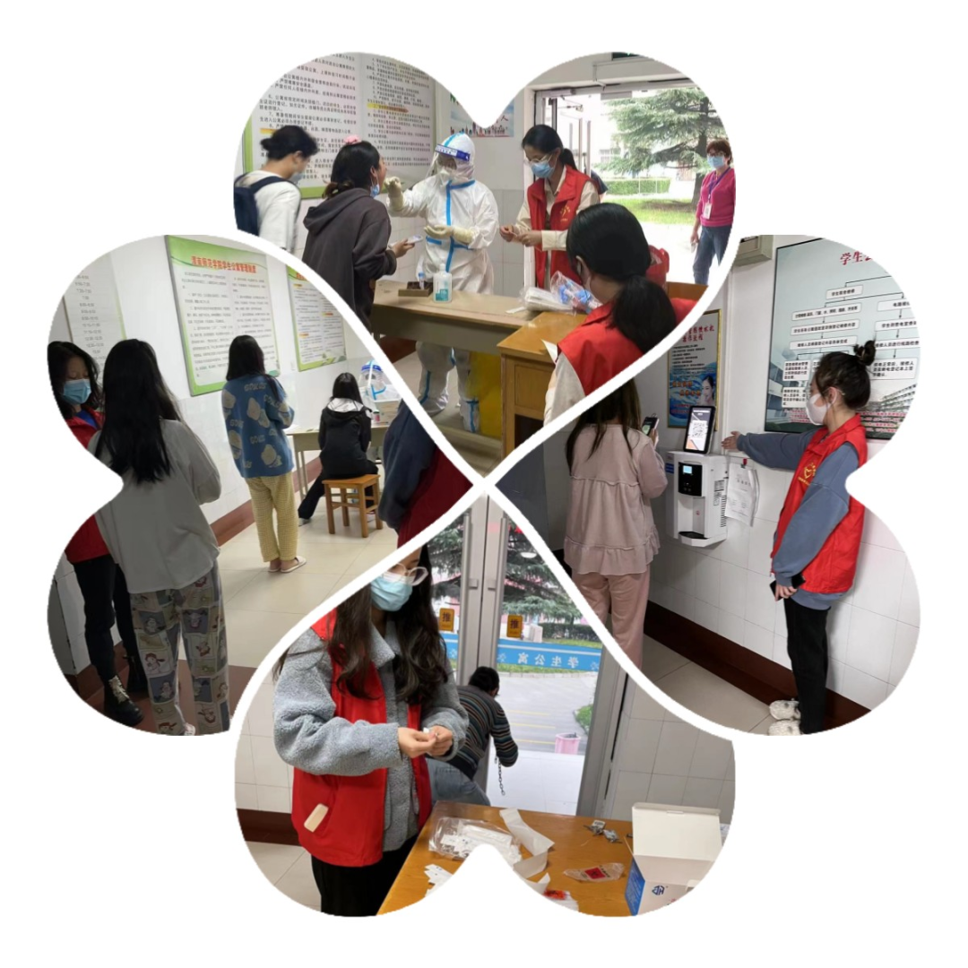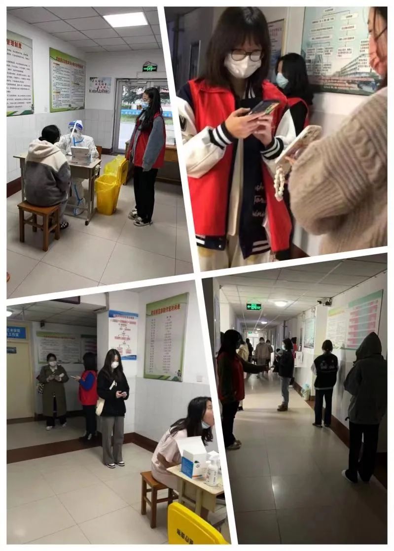 他们在全员核酸现场进行维护,确保现场秩序的稳定,指导同学们核酸检测扫码登记,确保核酸检测不漏一人。