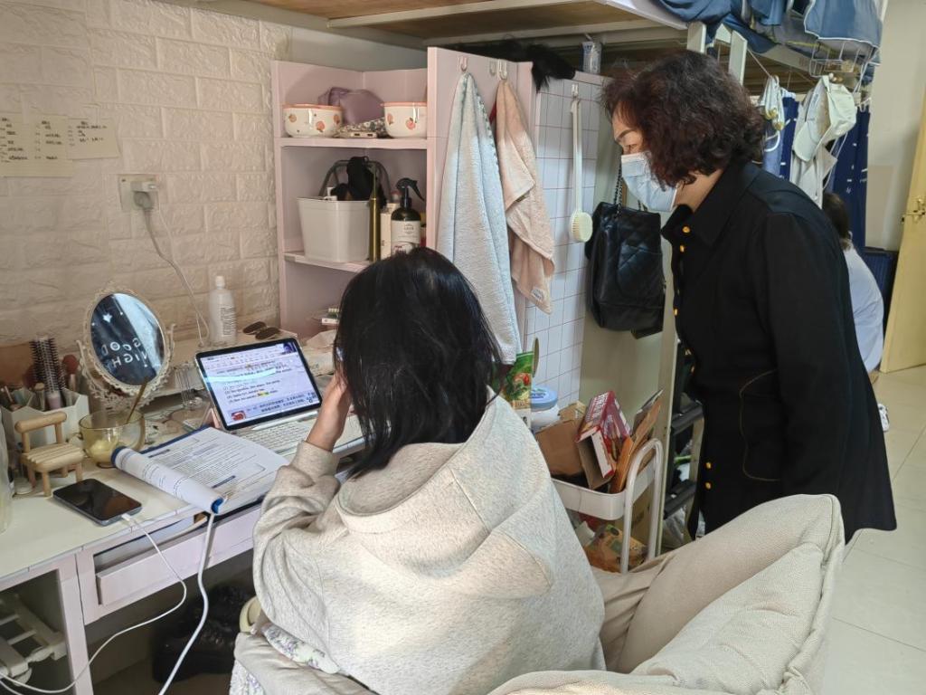 巡查过程中,王菊霞细致了解员工在宿舍学习和生活情况,对员工的在线学习提出明确要求:一是要提前进入课堂,调试好设备,准备好学习用具;二是要积极参与在线学习与课堂互动,做好听课笔记;三是要认真做好课后复习和总结,可以利用思维导图对所学内容加以总结,并对思维导图不断完善和补充,提升学习效果;三是要增强自我约束力,注意宿舍卫生,保障线上教学期间的身心健康。