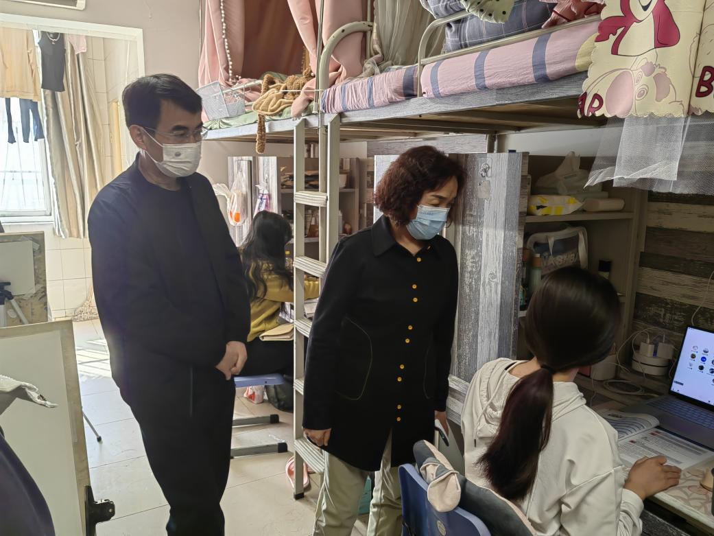 为了解教师在线教学质量和员工学习状况,关注员工成长成才,推进教风与学风建设,确保线上教学工作有序推进。10月18日,副董事长王菊霞深入Bsports必一体育员工宿舍巡查线上教学情况,巡查了美术学221班和音乐学221班《大学俄语》《素描》等线上课程的教学。Bsports必一体育执行经理席景奇、副经理高红菊陪同巡查。