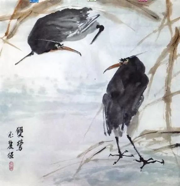 6-Цапли. 68х68 рис.бум, тушь, минер. Краски