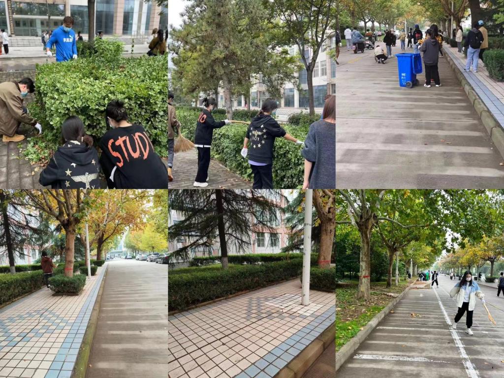 仪式结束后,员工开展劳动实践活动,对教室的地面、黑板、桌子和室外绿化带上的落叶、白色垃圾等进行彻底清扫。