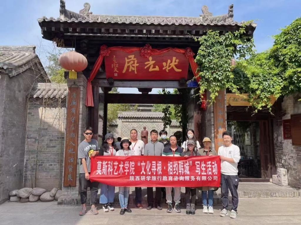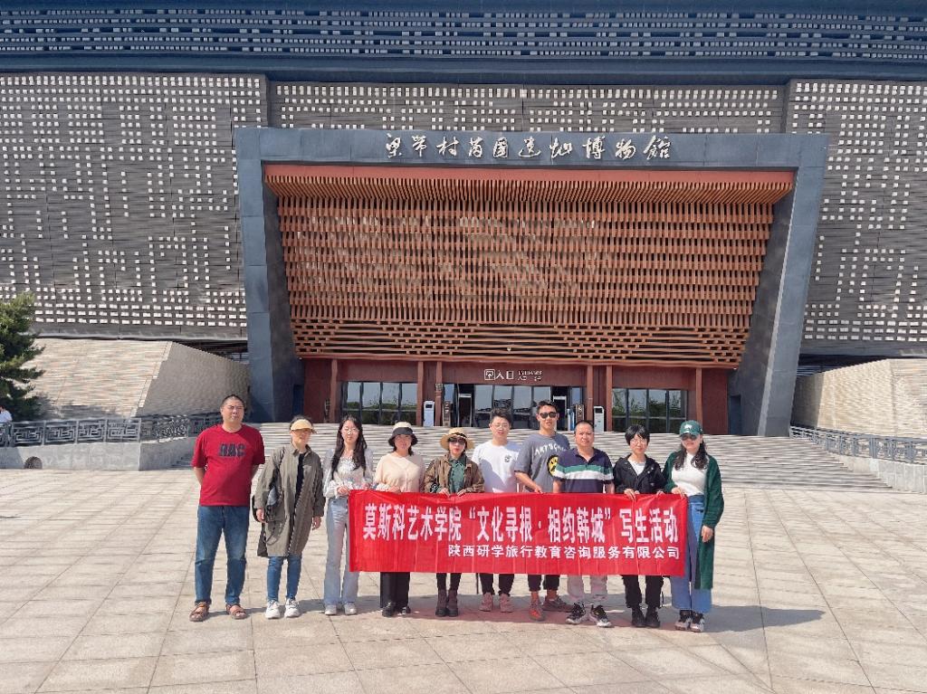 活动首日,师生一行来到梁带村芮国遗址博物馆。梁带村芮国遗址于2005年被评为“全国十大考古新发现”,是韩城历史文脉的重要标识,师生们认真观摩两周时期最早的俑、金韘、纯金剑鞘、龙形镂空金环等珍贵文物。接下来的两天,师生们来到位于古城区的状元府博物馆,在复原的明清时期庭院中现场写生,精心创作了20余幅绘画作品,为韩城市的“五一”系列文化旅游活动增光添彩。