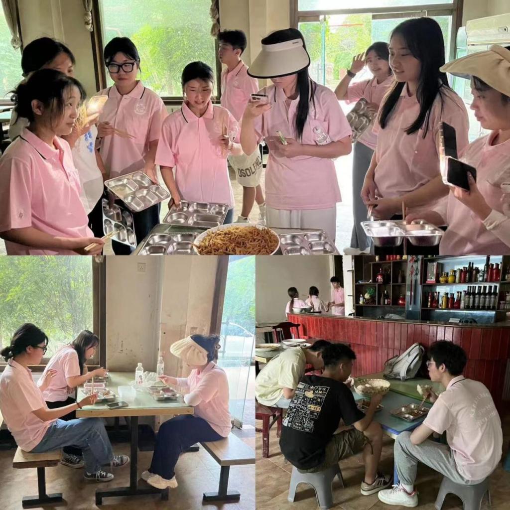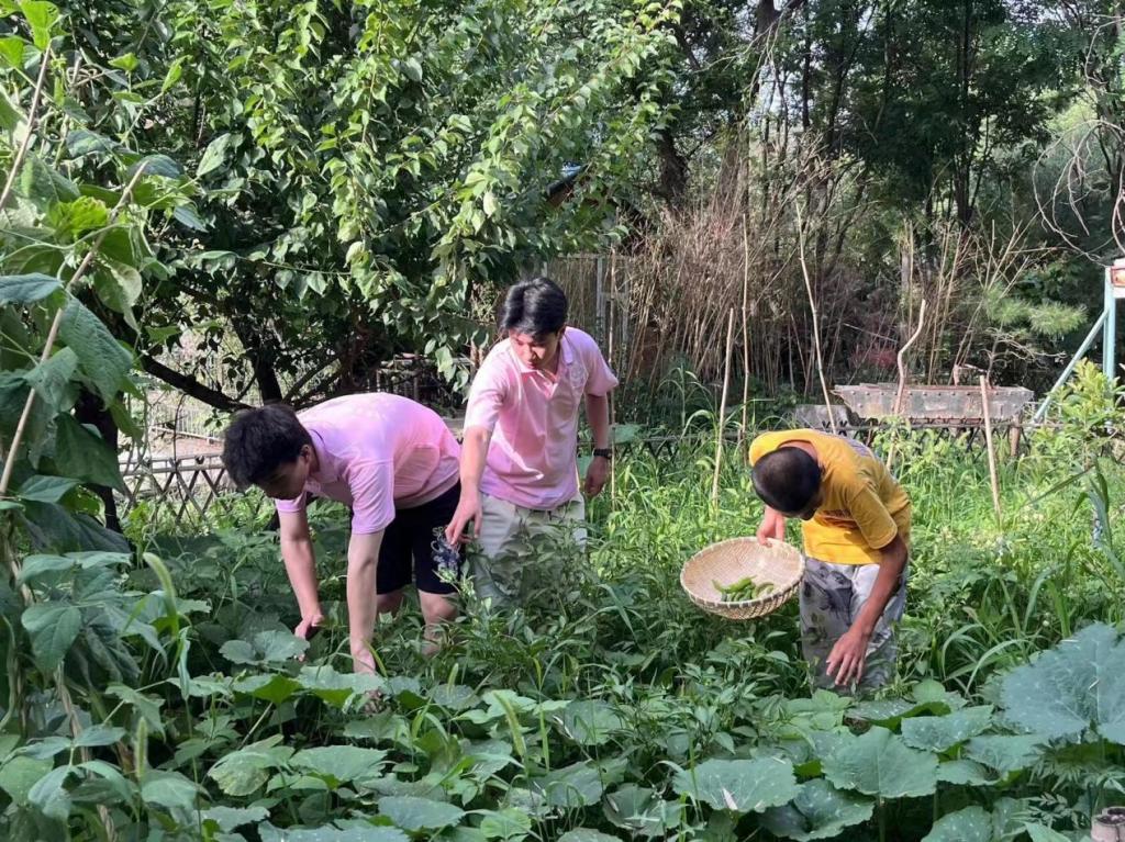 园区有农耕区,种植有能够满足日常生活所需的各种蔬菜。实践团队员跟孩子们一起到农耕区采摘农作物,在厨房进行清洗、搭配。经过实践团几名老员工厨师的简单烹饪,转眼功夫,一桌朴素而不失丰盛、色香味俱全的大餐,呈现在大家眼前。用餐前,不少员工实践队员不忘拍照纪念。实践团用这自力更生的第一餐,为自己的支教实践活动举行了别样的开幕式。