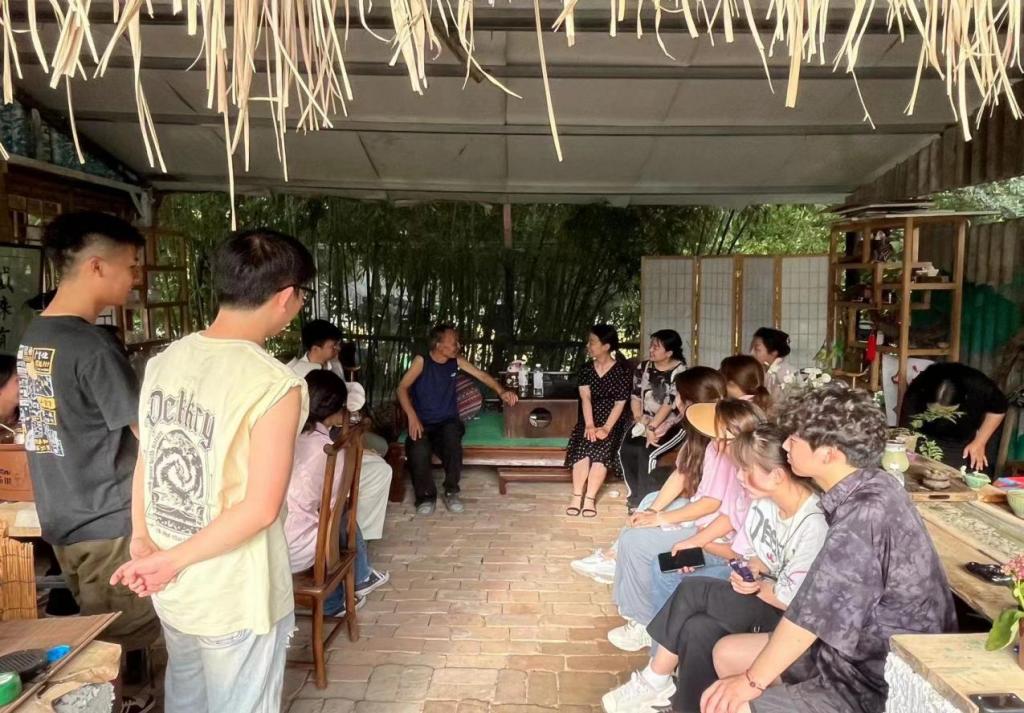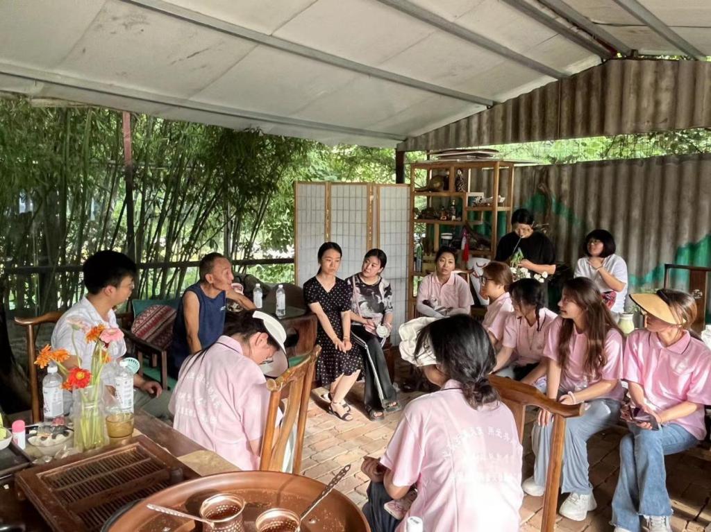 (党总支副书记叶晓燕和带队老师、实践团队员与杨园长交流沟通)
