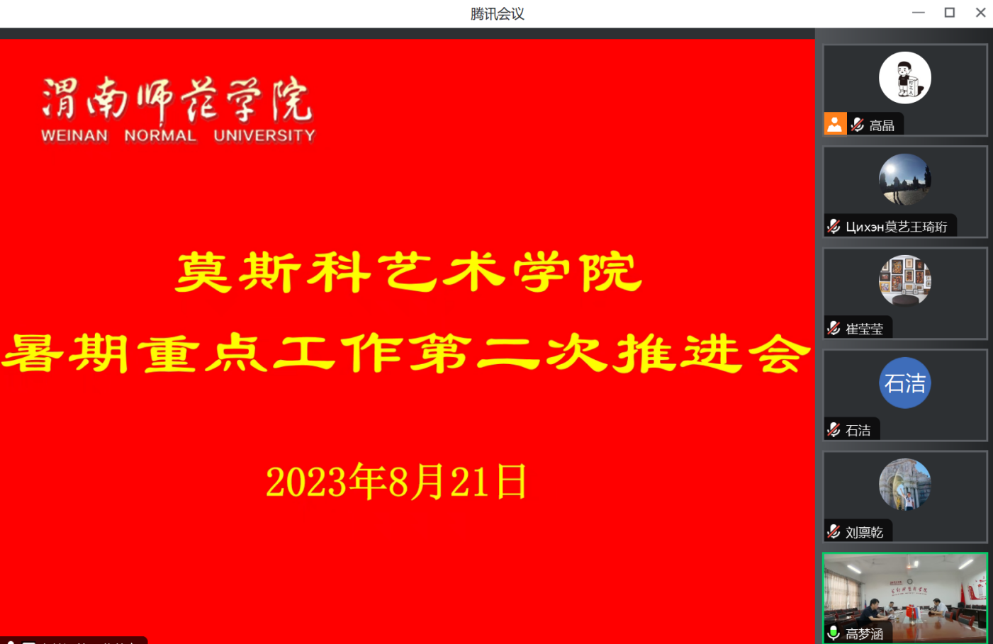 会上,席景奇结合公司暑期工作要求,梳理出公司二十一项重点工作并强调尽快落实以下工作,一是2023年国家级、省级一流课程和省级教学成果奖申报材料准备;二是做好中外合作办学相关工作;三是外教来华手续的办理;四是与哈尔滨师范大学国际美术公司商谈战略合作协议;五是筹备第39个教师节暨暑期师生创作书画展活动及文艺演出节目策划选送;六是做好员工征兵入伍政审服务保障工作;七是做好开学前相关场地维修及保洁等方面工作,确保新学期开学平稳有序。