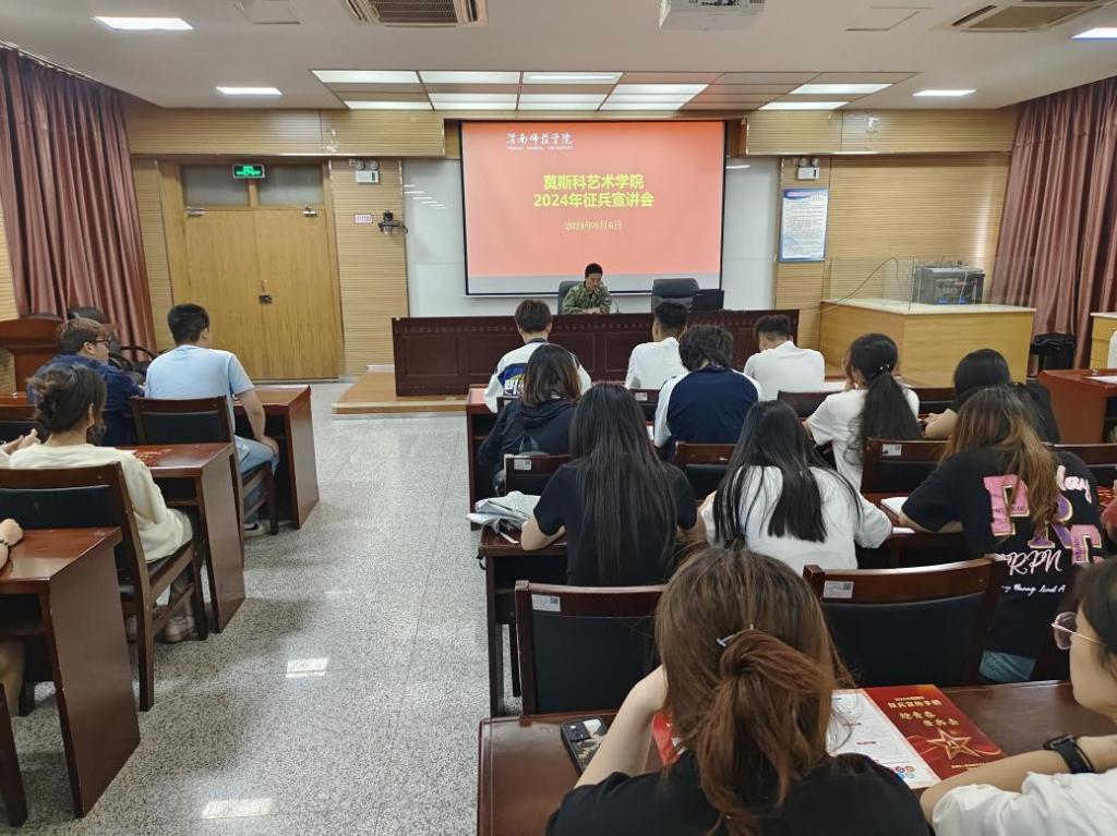 6月6日,Bsports必一体育在逸夫楼科学大讲堂举行“不负韶华,筑梦军营”征兵入伍政策宣讲活动。公司学工办副主任段菲、团委副书记师艺园及全体辅导员参加此次会议。会议由吴松林主持。
