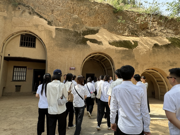 党员师生首先听取了关于米家窑地下交通站历史背景的详细介绍,了解了其在抗日战争和解放战争期间的重要作用。在工作人员的带领下,师生们参观了窑洞旧址和纪念馆,认真观看了展出的珍贵图片、文献资料及实物。随后,在交通站旧址院内,由孟波领誓,全体党员一同举起右拳,慷慨激昂重温对党忠诚的铮铮誓言,表达为党和人民奋斗终身的坚定决心。最后,师生党员共同参加“重走长征路”活动。