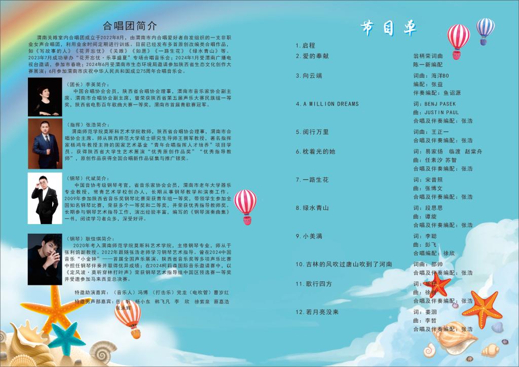 2022年8月,渭南市合唱协会与渭南市音乐家协会几名老师共同筹划创建了渭南关雎室内合唱团,至今,合唱团成立已经两年。大家保持着对合唱的热爱、对艺术的追求、对初心的坚守,排除各种困难,利用业余时间定期排练。第一届音乐会去年夏季成功举办,今年第二届如约而至。