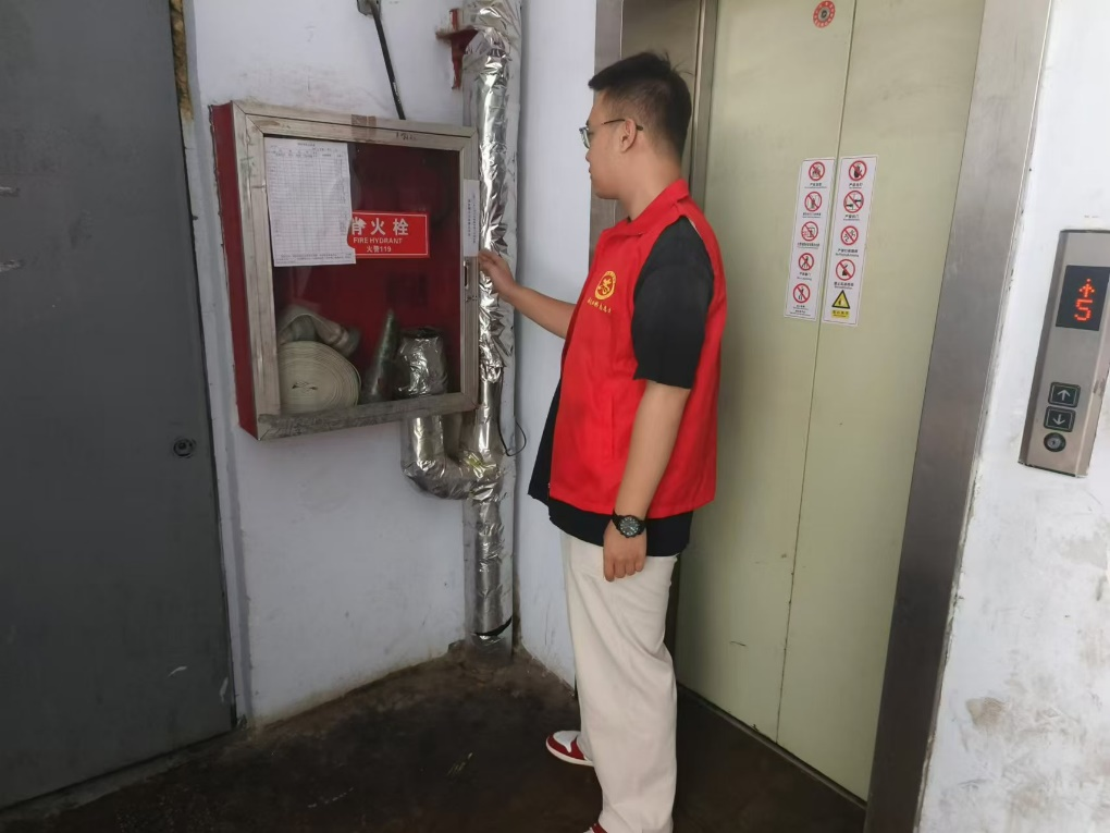 (崔焱同学查看消防设施更新情况)