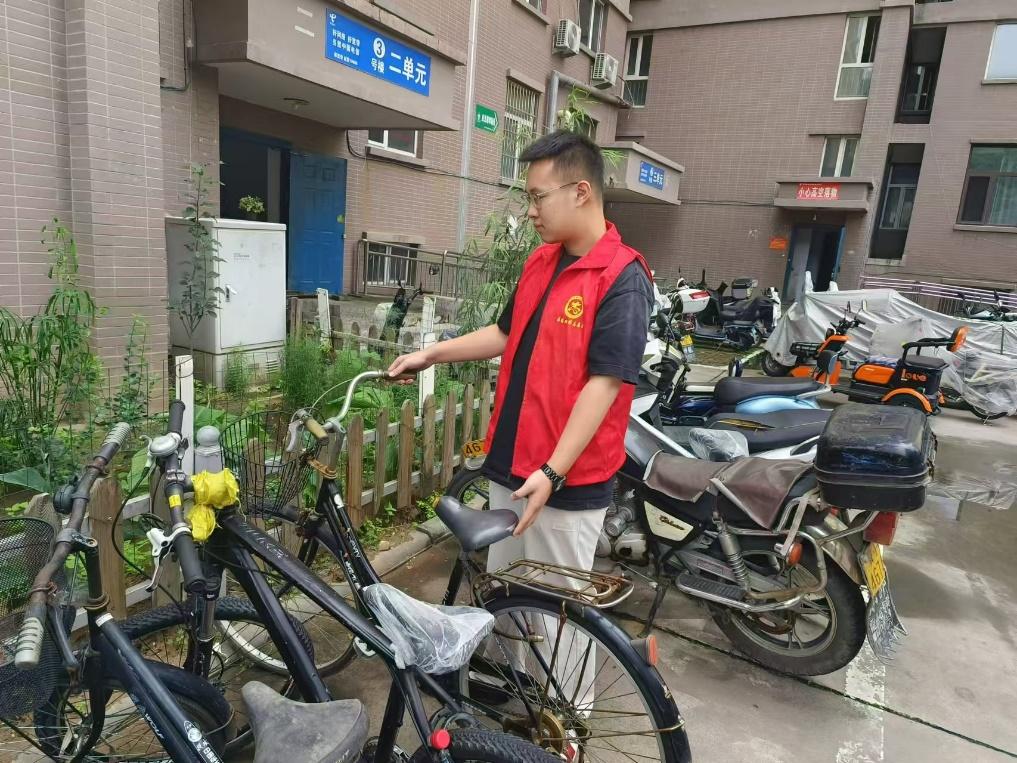 (崔焱同学在社区整理自行车停放)