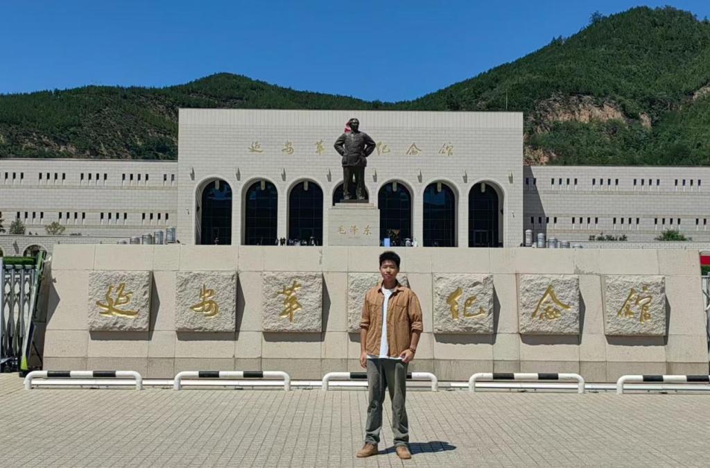 (孙宇霆同学在延安革命纪念馆前合影留念)