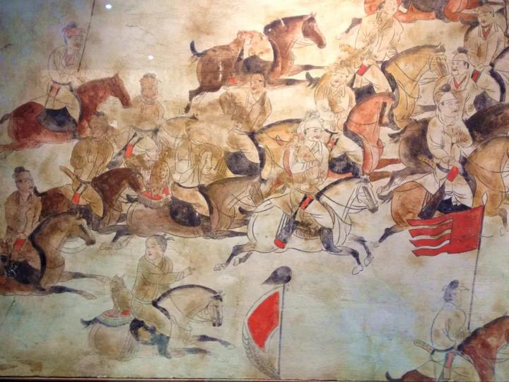 《狩猎出行图》是唐代宫廷生活的真实写照,全画犹如一曲优美的交响曲,呈现出大唐壮观的出猎景象。