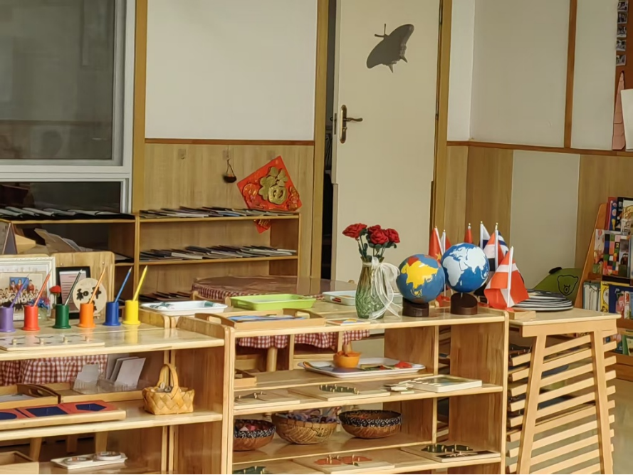 蒙氏教室按功能区划分:日常生活区、感官区、数学区、语言文化区等,教具摆放遵循“从左到右、从简单到复杂”的序列规则。例如,数学区的“纺锤棒箱”“数字与筹码”等教具,通过具象操作帮助幼儿理解抽象概念。
