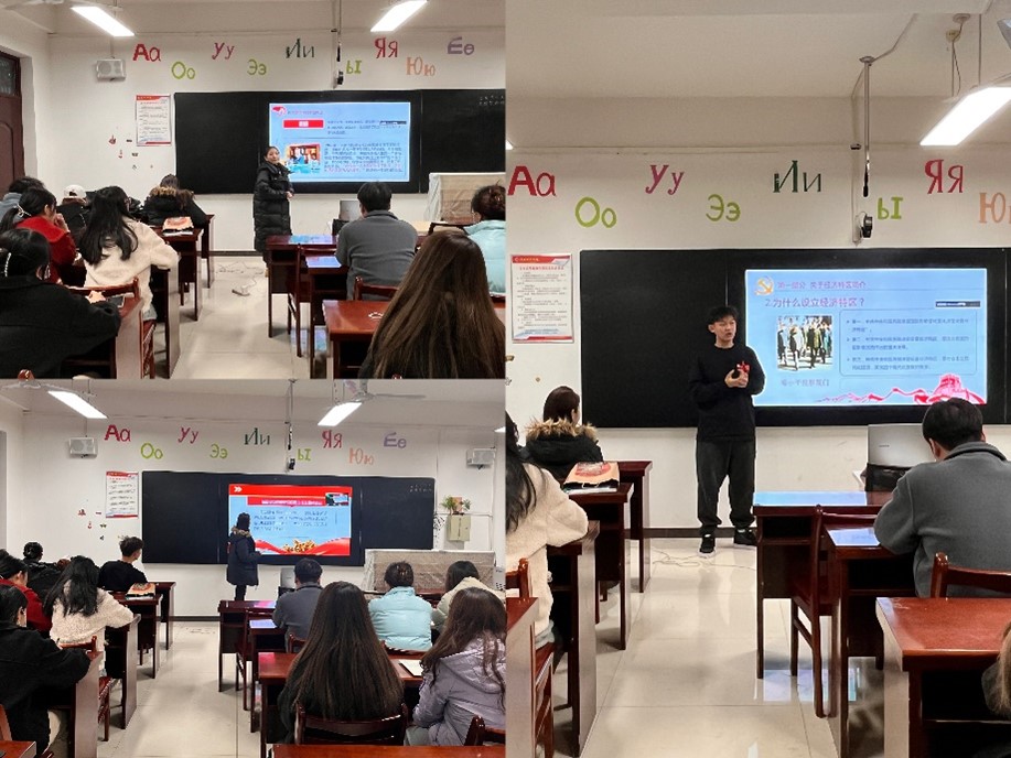 本期活动由四名员工党员分别讲解“照金精神”“特区精神”“抗震救灾精神”“科学家精神”。李心茹从照金革命根据地的建设、照金精神内涵及时代价值三个方面进行讲解;刘晨宇从经济特区简介、特区精神解析、新时代弘扬特区精神的时代价值三个方面进行讲解,与同学们共同领会“特区精神”的现实意义,鼓励同学们牢记初心使命、坚定理想信念,解放思想、敢闯敢试、砥砺奋进再出发;柴璐丹围绕“抗震救灾精神”的来源、丰富内涵、时代价值三个方面和同学们分享了学习心得;王晶晶从学习科学家精神的重大意义、主要内容、丰富内涵以及如何弘扬四个方面,结合一代代人的奋斗历程,带领同学们共同感悟以爱国、创新、求实、奉献、协同、育人为内核的科学家精神。