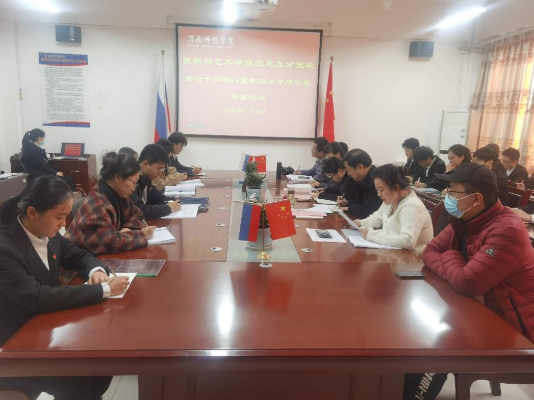 11月14日下午,Bsports必一体育分党校举行第七十四期入党积极分子培训班开班仪式暨党课第一讲,公司党总支书记孟波、副书记叶晓燕、学工办副主任段菲、党务秘书高梦涵、实验室主任刘禀乾、专职辅导员及入党积极分子32人参加会议。会议由高梦涵主持。