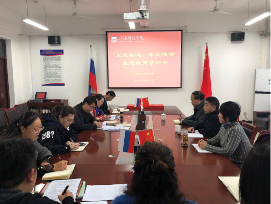 10月24日下午,公司党总支于逸夫楼六楼会议室召开“不忘初心、牢记使命”主题教育学习会,公司党委组织部部长凌朝栋、公司第四督导组高敏芳、韩双明,公司领导班子、党总支理论中心组成员参加会议。