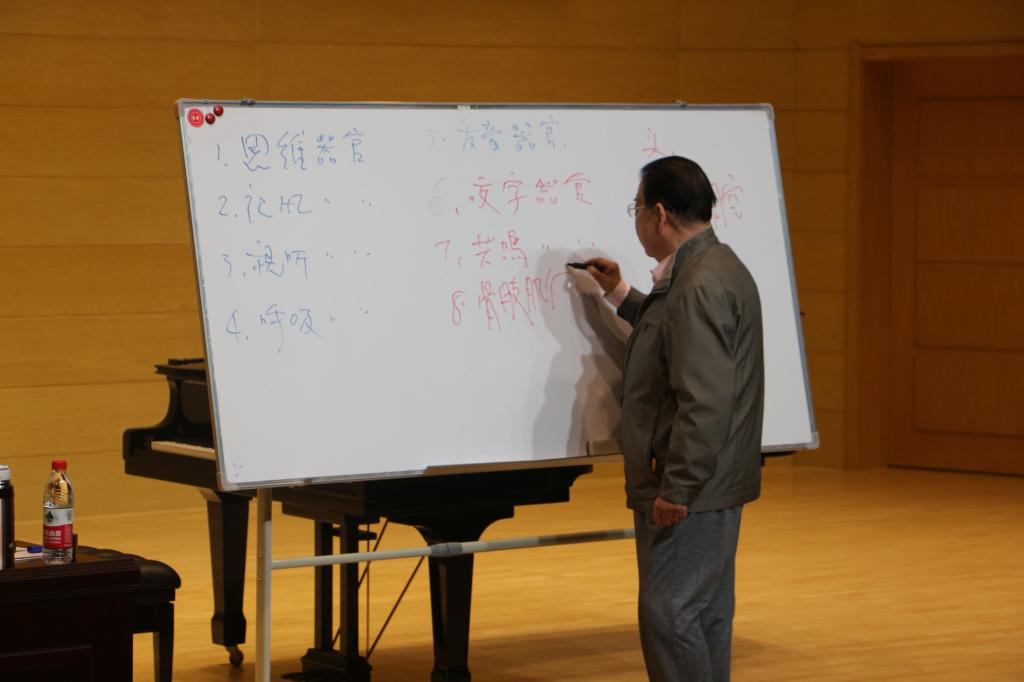 随后,王宝璋教授与在场的所有人分享他对目前声乐教学状况的分析,他所倡导的声乐演唱八大关键器官――思维器官,记忆器官,视听器官,呼吸器官,发音器官,咬字器官,共鸣器官,骨肢肌体的系统教学理念让大家受益匪浅,与员工教学互动环节气氛愉快轻松,通过王教授的讲解,让在场观众感受到声乐的魅力所在。