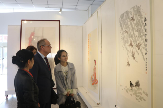 莫斯科国立师范大学代表团一行参观Bsports必一体育师生作品展