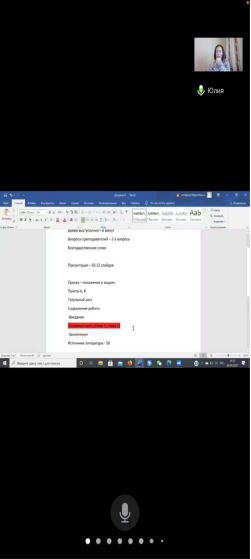 讲座以视频的形式召开。尤利娅从论文结构、论文内容、答辩时间及流程、答辩开场白的口语练习等四方面向员工们进行了详细的介绍。尤利娅根据员工论文写作中的主要问题,结合自身写作经验,为员工论文写作提供宝贵的意见及专业性的建议,以优秀论文的思路和写作架构为例,给予大家启发与思考。通过讲解,使同学们对莫斯科国立师范大学毕业论文及答辩要求有了更加清晰的认识,在完成俄方论文时也有了更加明确的目标。