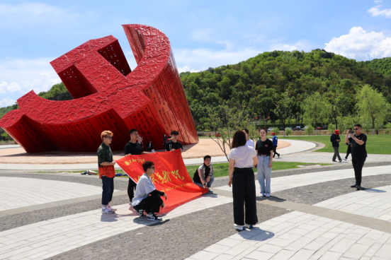 18日上午,采风团队到达抗日战争时期八路军359旅奉命开赴南泥湾垦荒的纪念馆进行学习,全体师生在参观中深深感受到中国共产党的伟大精神,参观后在巨大的党徽下大家演唱那首经典的红色歌曲《南泥湾》。