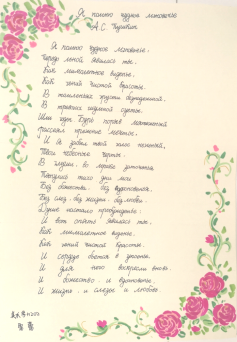 本次比赛的书写内容为俄国著名诗人叶赛宁的《夜》、莱蒙托夫的《祖国》、普希金的《我记得那美妙的瞬间》和茨维塔耶娃的《我想和你在一起生活》四首诗歌,员工任选自己感兴趣的一首作品进行书写。