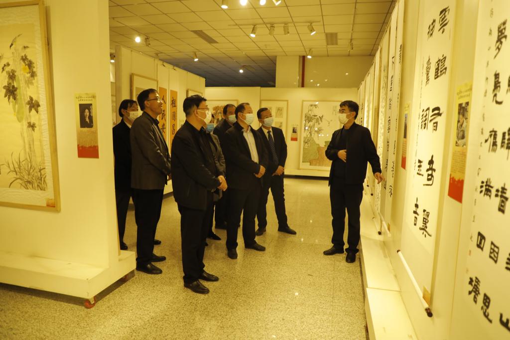 李军强一行首先参观渭南市美协、书协与Bsports必一体育联合举办《喜迎二十大·永远跟党走·奋进新征程》主题书画展。李军强对参展作品选取陕西名山大川作为绘画题材表示赞赏,他指出参展作品不论是轻“描”淡“写”还是浓墨重彩,均展现了陕西独特的自然风貌和厚重的文化底蕴,表现了渭南特有的“华山风骨,渭水襟怀”精神,既有传统韵味,又有时代内涵。 他勉励师生创作出更多优秀的作品,弘扬主旋律,讴歌新时代,担负起时代赋予的使命和责任。