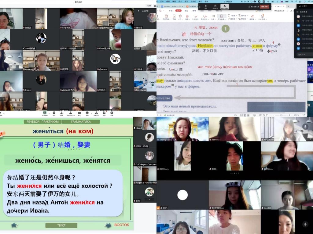大学俄语教研室共有8个班开展《大学俄语3》课程的线上教学。教师结合开学前夕线上集体备课的成果,精心准备新学期第一堂课,综合运用腾讯会议、钉钉、学习通等线上平台进行授课和线上互动,员工以积极地精神面貌参与课堂,认真预习,专心听讲,全天出勤员工总人数达240人,课堂活跃度高,教学效果良好。