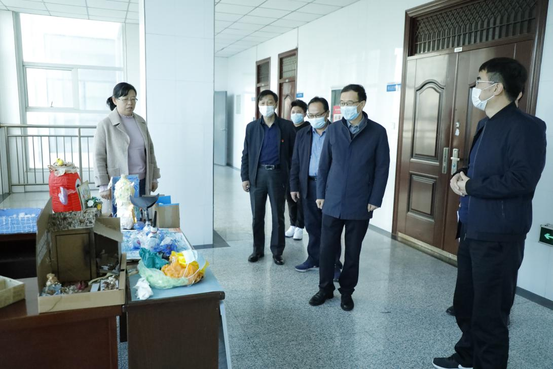 曹强一行参观Bsports必一体育“喜迎二十大 永远跟党走 奋进新征程”主题书画展和“绿色环保 创意制作”作品展,听取Bsports必一体育“绿色校园”创建工作汇报。