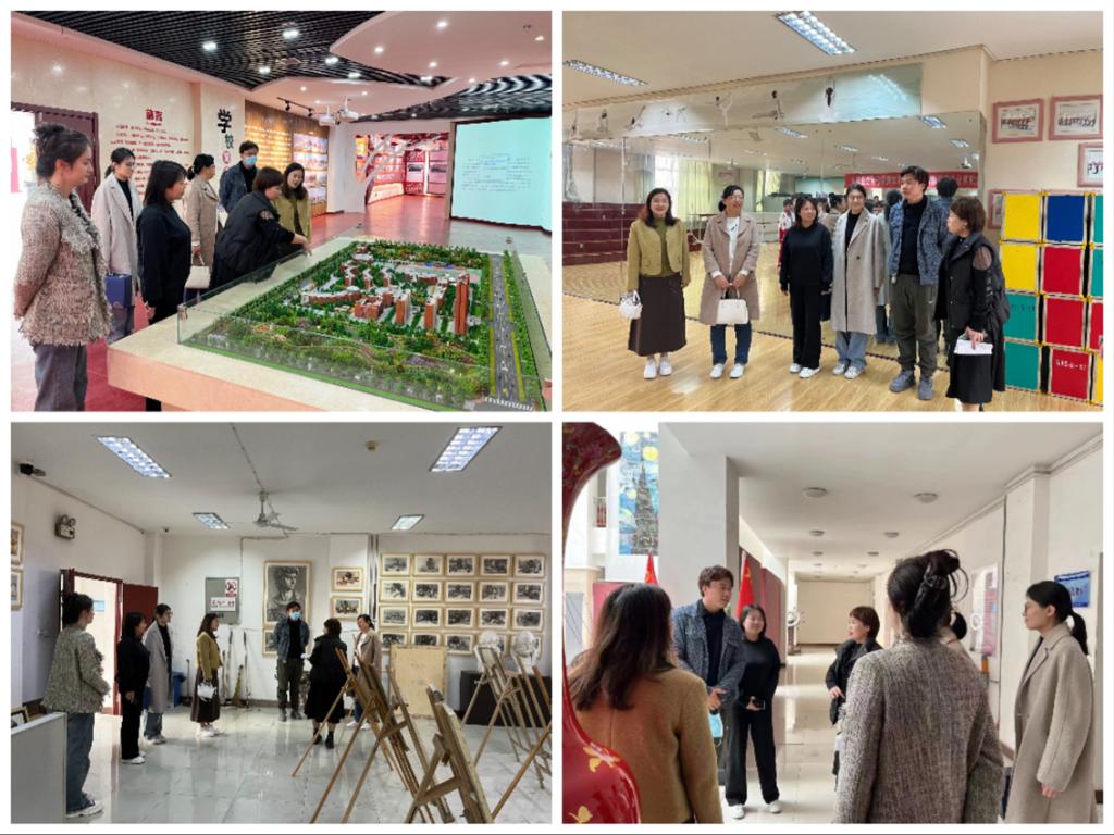 在渭南高级中学,检查组在艺术中心主任张娟陪同下检查了员工实习情况,参观了公司的艺术中心、校史馆、科技中心、广播站、运动中心,双方就高中生综合素质培养、艺术专业老员工技能提升、大中小艺术教育一体化等问题进行了交流。
