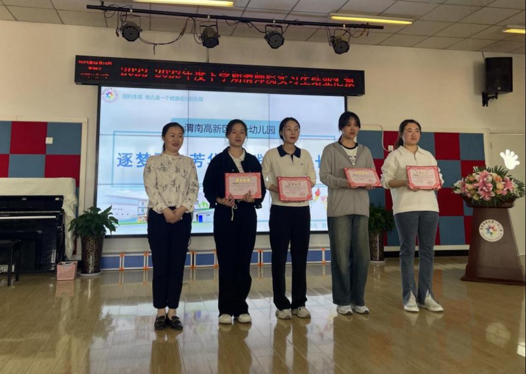 刘丽娜殷切嘱托实习生:第一,希望大家做好职业发展规划,树立终身学习理念,通过不断充电学习,用知识丰富自己的心灵、回报父母、回馈社会。第二,在未来的幼教事业中,希望大家以爱心、童心、耐心、细心和责任心拥抱每一个孩子,以饱满的精神和专业的态度促进孩子们健康快乐的成长。随后,刘丽娜给实习生颁发优秀实习生证书。