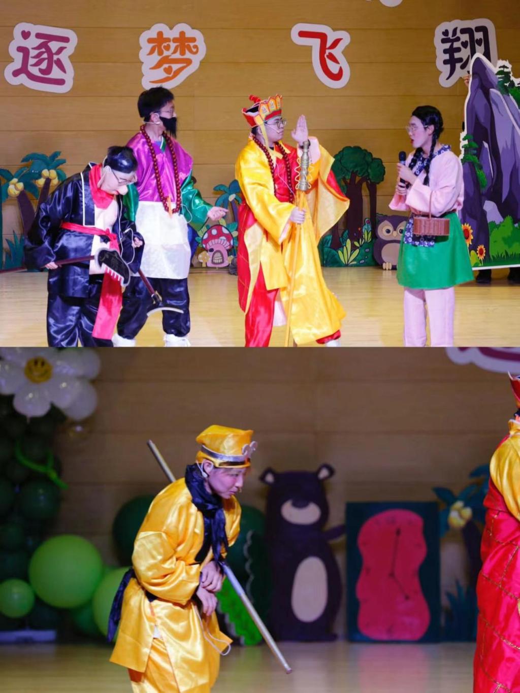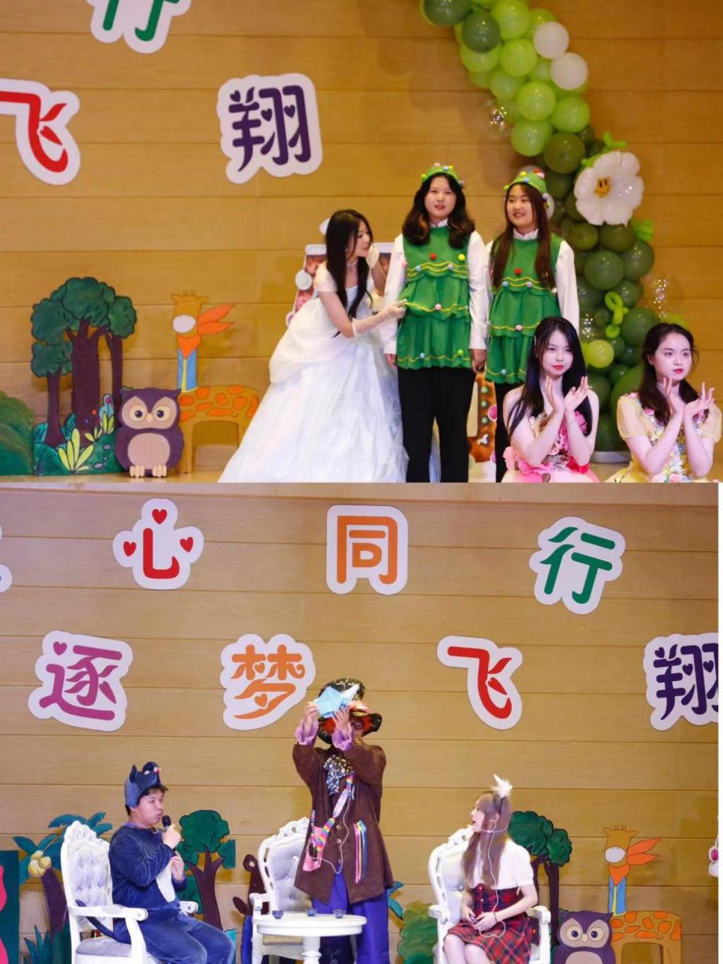 此次展演活动由崔莹莹组织策划、李小凡老师担任总导演、学前教育专业团队全体教师精心指导。员工以班级为单位,在剧本改编创编、舞台设计、道具制作等方面做了充分准备。展演在舞蹈《我的童年》中拉开帷幕,演出由《爱丽丝梦游仙境》、《西游记》、《白雪公主》、《陪着蜗牛等花开》、《寻梦环游记》共5个节目组成。寓教于乐的故事情节,引人入胜的表演呈现,有趣夸张的动作表达,在六一国际儿童节之际为“小朋友”传递快乐,也为观众带来了一次的视觉盛宴。