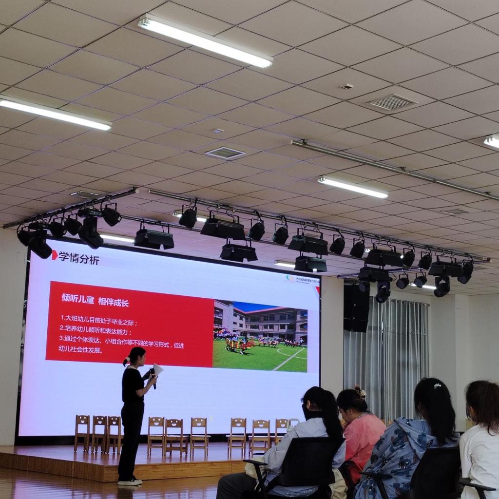 教学观摩环节,教师张雯和李瑜展示大班数学《比一比》,秦朝美和张妤展示大班语言课程《安安的探险日记》。同学们在观摩中学习了幼儿园教学活动设计与组织的技巧。