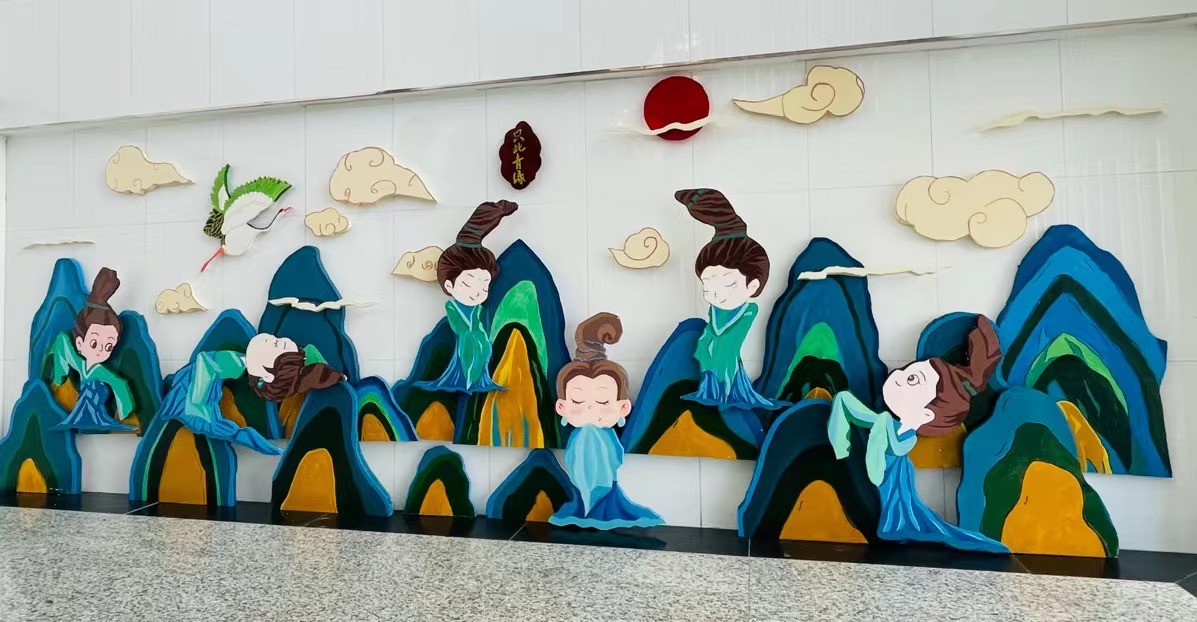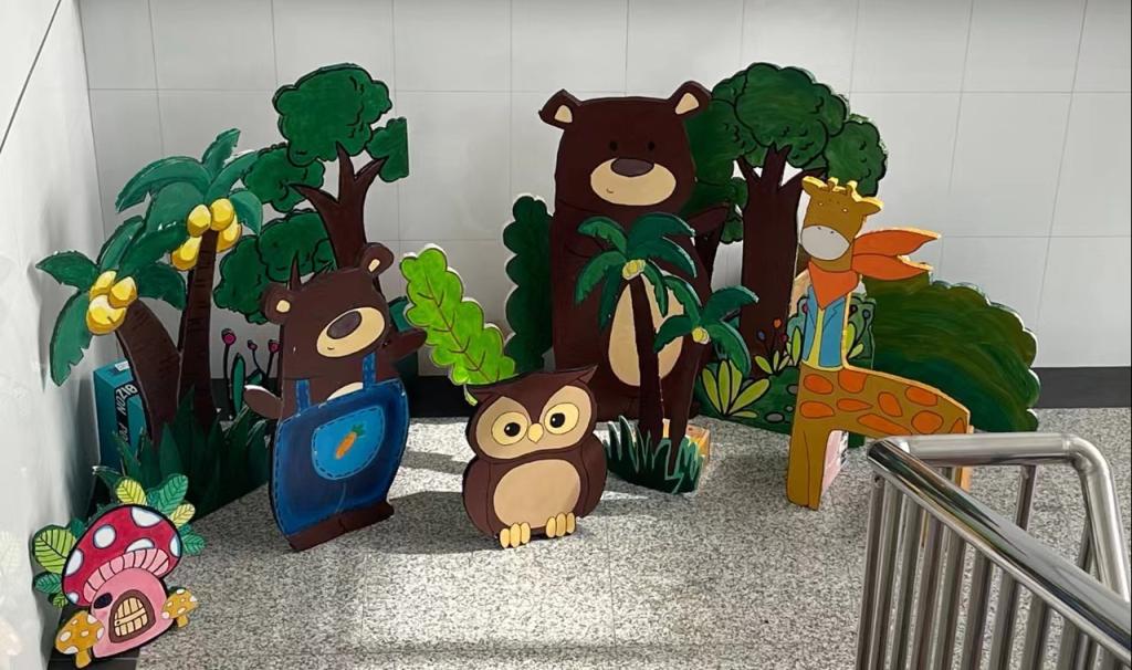 “环创巧育人” 展示区,展出环创作品40余幅,是本学期阴光艳老师、石洁老师、崔莹莹老师《学前教育机构教育环境创设(设计)》课程教学实践成果,由学前教育专业21级员工创作完成。环境作为“第三位老师”,作为幼儿园的一种隐形课程,应具有教育、记录的功能,此次“环创巧育人”即是基于此种理念。同学们在创作过程中精准的掌握了环境创设的核心内容,通过区角作品、主题墙作品、活动区作品进一步强调了环境的“中介和桥梁”作用。
