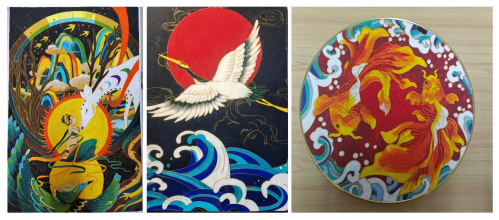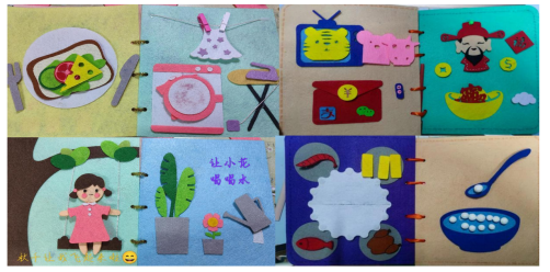 “手工秀创意”展示区,展出手工作品40余幅,是本学期阴光艳老师、石洁老师、崔莹莹老师《学前教育机构教育环境创设(设计)》课程教学实践成果,由学前教育专业21级员工创作完成。作品包括装饰画、衍纸作品、不织布布书、掐丝珐琅画等不同类型的手工作品。这些手工作品均为学前教育专业员工亲手制作,体现出学前教育专业员工娴熟的专业技能。