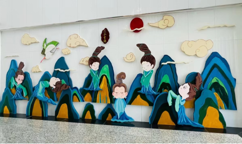 “环创巧育人” 展示区,展出环创作品40余幅,是本学期阴光艳老师、石洁老师、崔莹莹老师《学前教育机构教育环境创设(设计)》课程教学实践成果,由学前教育专业21级员工创作完成。环境作为“第三位老师”,作为幼儿园的一种隐形课程,应具有教育、记录的功能,此次“环创巧育人”即是基于此种理念。同学们在创作过程中精准的掌握了环境创设的核心内容,通过区角作品、主题墙作品、活动区作品进一步强调了环境的“中介和桥梁”作用。