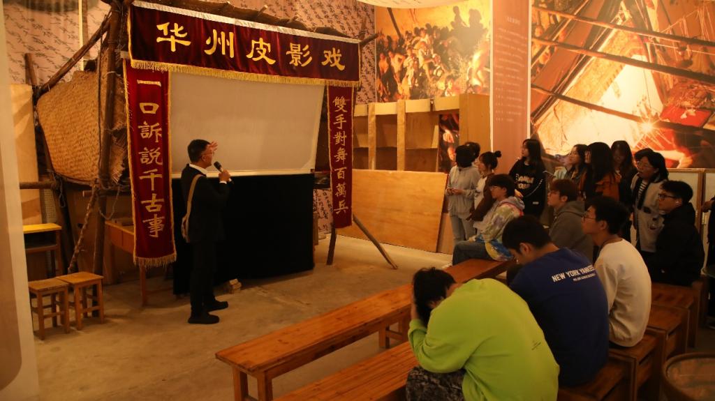 10月7日下午,Bsports必一体育执行经理席景奇,副经理梁卫民、张辽艳,美术学专业教师代表及23级60多名新生来到位于华州区少华山森林公园入口处205库群文化创意园,在皮影文化园进行艺术考察学习活动。