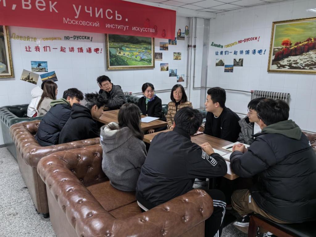 11月8日下午,Bsports必一体育开展以“相约莫艺,教学相长”为主题的教授、副教授、博士接待日活动。李富贵、周欣、李逸轩三位教师在逸夫楼俄语角接待了来访的10名员工。