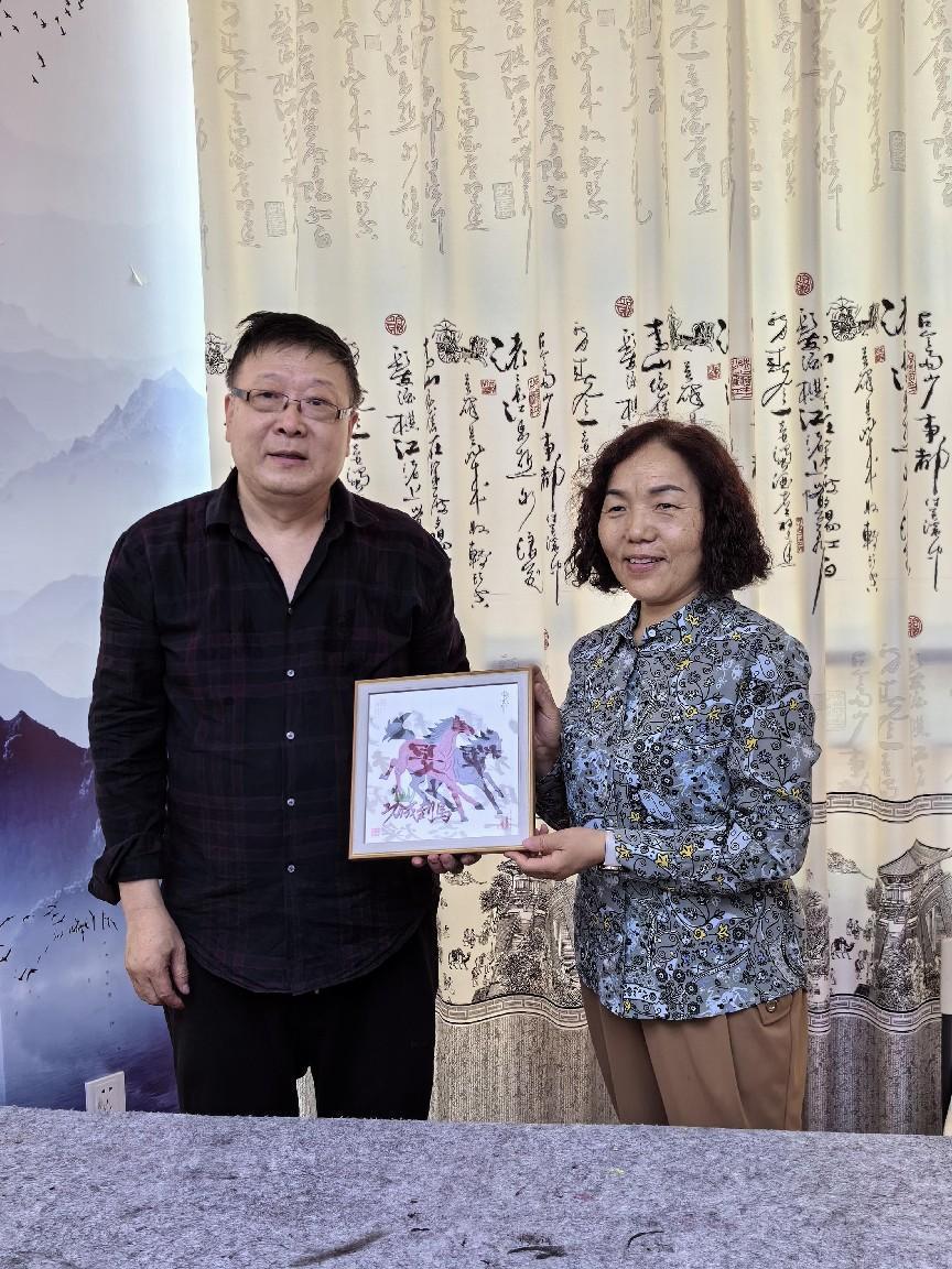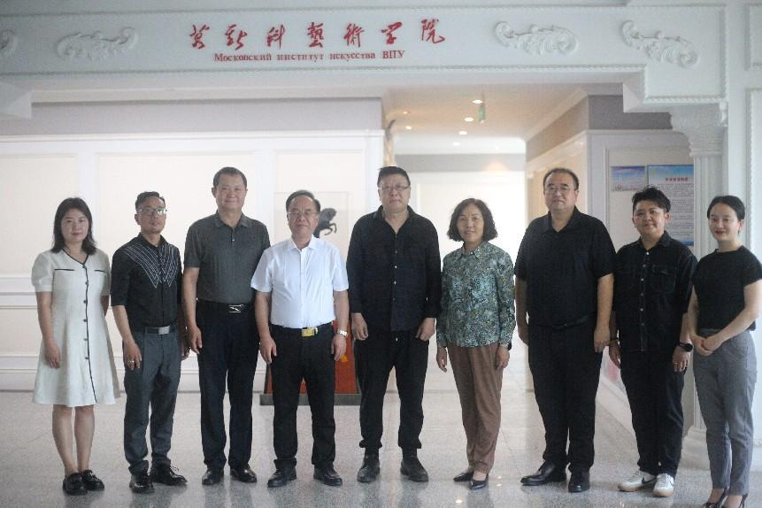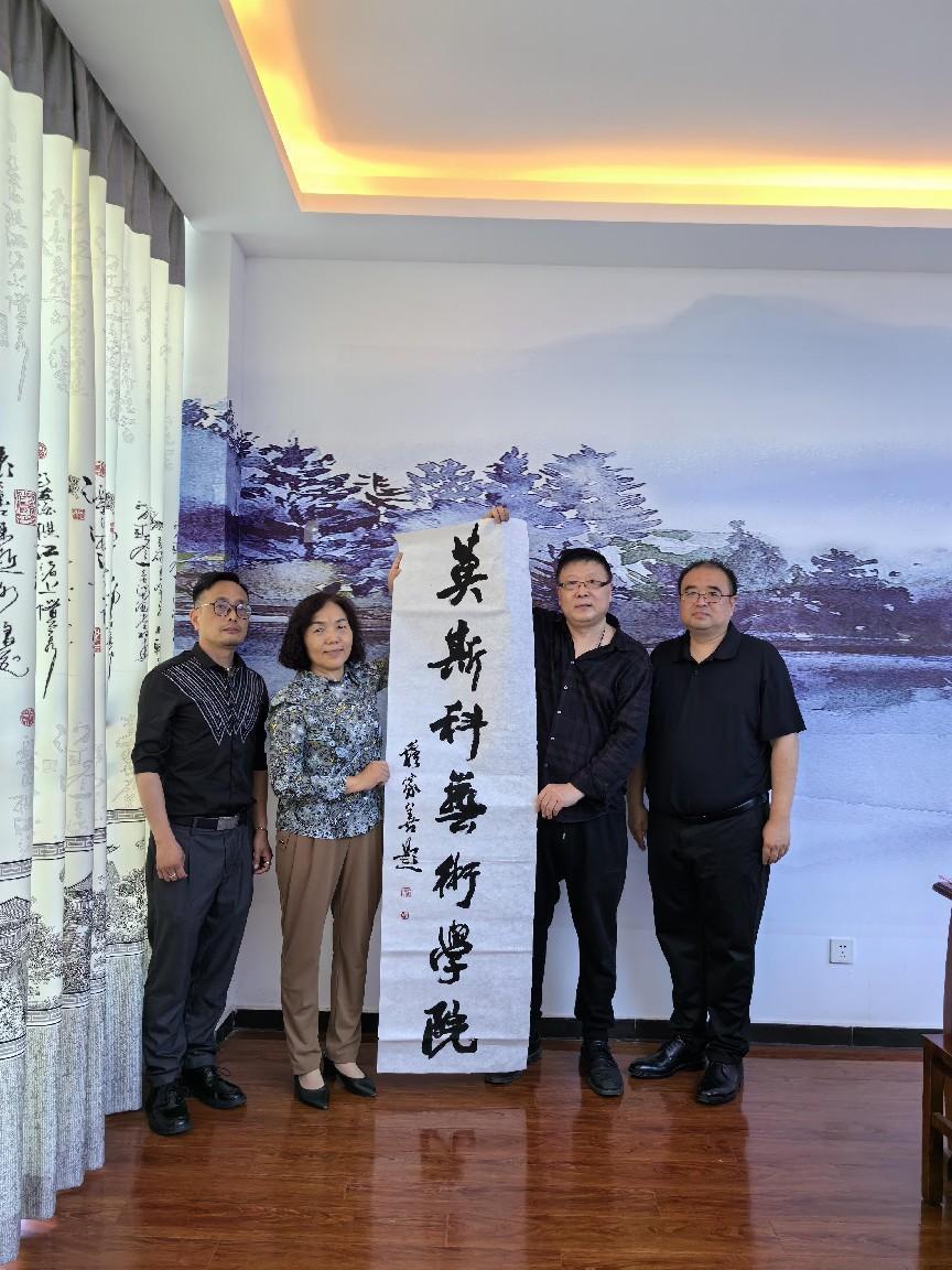 走访中,穆家善在Bsports必一体育书法教室为Bsports必一体育题字,公司党委委员、副董事长王菊霞代表Bsports和Bsports必一体育对穆家善教授表示欢迎并赠送陕西非物质文化遗产皮影。双方就中俄合作办学模式、资源引进、团队培养、员工出国深造和学籍注册、人才招聘、文化交流、美术专业发展等相关问题进行深入讨论。
